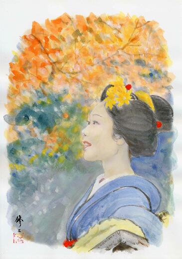 ●『秋光』 A4マット紙 透明水彩 「朝日チャリティ美術展」寄贈 12.26〜27阪急うめだ店