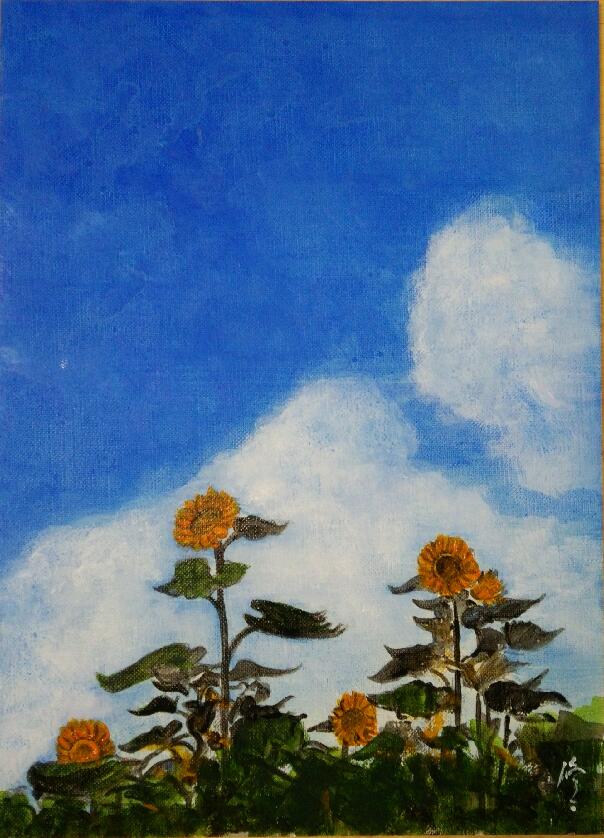 「空 ひまわり」 F4 アクリル 著名芸術家と名士作品展(H28.11.30〜12.4)ゼザインクリエイ