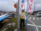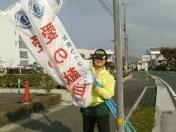 加東市民病院献血です。風が強く、雪まで降りました。朝からノボリ立ててます。