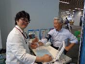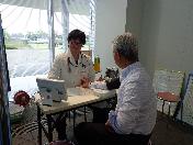 献血前の血圧測定、予備検査です。