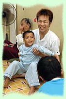 8月1日。健診グループは昨日とは別のハウドゥック村というカンボジア国境の村に出かけていった。今日はリハビリテーション指導グループの様子を伝えることにする。会場は平和村。平和村というのはベトナム全土に11箇所あってドイツの財団の寄付をもとに設立された。目的はベトナム戦争で散布された枯葉剤による被害児の救済のために生活の場とリハビリテーションの場を提供することにある。しかし場所によって性格は様々だ。ここタイニン省の平和村は1993年に設立され、入所・通所のリハビリテーションを行ってきた。対象は枯葉剤被害児に限らず障害を持った子どもたち全般に対して門戸を開いている。省内には、ここ以外にリハビリテーションをおこなえる施設がまったく存在しないからそれも当然だ。最近は成人障害者へと対象を広げてきており、名称も今年からタイニン省リハビリテーション病院にかわった。この病院に医師とリハビリテーションスタッフはあわせて9名、かかえる人口は100万人以上。平和村だけではいくら頑張ったところですべてに対応することは不可能だ。日々求められる要求に対応する為には地域に住む、熱意があって少しだけ医療に詳しい人々を多数募集して、リハビリテーション技術と生活指導の方法を教育し、その人たちに直接の障害児者への対応を任せるということになる。この実際の担い手のことをCBRワーカーと呼び、こうした制度のことをCBRと呼ぶ(本来CBRは地域の人々の力に依拠した生活改善全体を含めたシステムであるが、ここでは医療に限定して使わせていただいている)。平和村スタッフの役割はワーカーたちを指導すること、そしてワーカーたちの手に負えない障害に直接対応する、この二点にある。