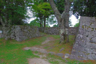 | 本丸の北東面の石垣。中央が虎口。 | 本丸の大手の虎口の枡形 |
