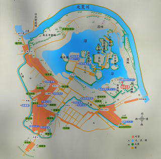 現地案内板より 本丸・二の丸・三の丸・竹沢曲輪など、沼上に浮かぶ曲輪群と、その北岸の新正寺曲輪と、南岸の新曲輪及び鍛冶曲輪との3つのブロックの曲輪からなる。 これらを北西から北東にかけて元荒川で囲み、また西から南にかけて巨大な土塁と堀からなる大構で囲む、惣構えになっていた。 |