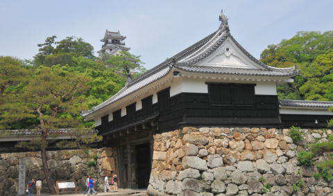本丸と二の丸を三の丸と獅子の段で囲み、これらはいずれも高い石垣の上にある。石垣の迫力は、さすが豊臣系大名の城であることを実感するのに十分。本丸の面積は広くないが、周囲が現存する多聞櫓と土塀で完全に囲まれているので、往時の城の雰囲気をそのまま味わえる。