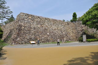 三の丸の石垣 高さが約13mある 本丸の黒金門と土塀