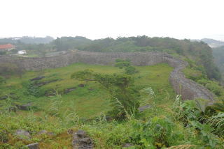 | 今帰仁城は、東と南西の面が急峻で、北西方面がなだらかな丘陵の上に設けられている。最高所に主郭を設け、北西方面に大庭、御内原、大隅が、南側の背後に志慶真門郭が配置されている。 |