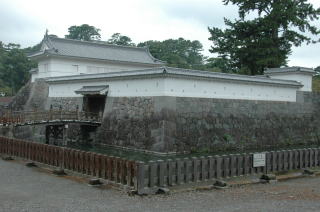 二の丸の表門(平成2年に復元) 埋門と奥の櫓門の間に枡形が形成されている |