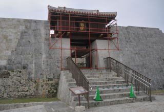 | 首里城は、地形を利用して内郭と外郭とに分けて築かれている。内郭、外郭ともに城壁で囲まれている。城壁は琉球石灰岩の切石を積んだ石垣で形成されており、総延長は1000mを超える。城壁の高さは6〜15m、厚みは約3mである。 首里城は、昭和20年の沖縄戦で壊滅的に破壊された。平成4年に、沖縄本土復帰20年を記念して復元された。世界文化遺産。 |