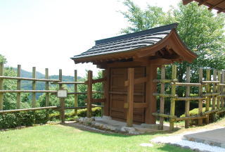 本丸跡には、門、御殿、物見台、厩を復元して、山城を再現している。