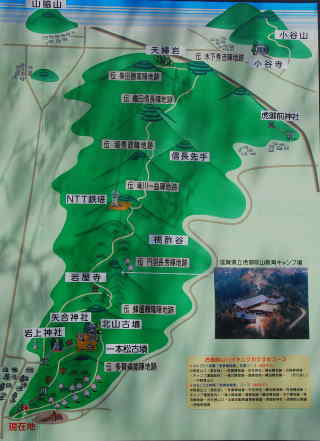 北陸自動車道長浜ICから北北東約5kmの、矢合神社をめざす。矢合神社の横の車道を進むと、車道の終点がキャンプ場の駐車場。この駐車場から、城域に入ることができる。往復1時間弱で各陣地跡をめぐることができる。ハイキングコースとして整備されており、歩きやすい。(1010.04.18)