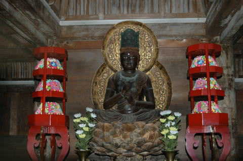 金剛界大日如来(国重要文化財) 多宝塔の本尊であり快慶作。 塔と同時期に制作され、像高102cmの寄木造り。 表面に漆を塗って、元々は金箔が張られており、衣には切金文様が施されている。 典型的な鎌倉様式とされる。 |