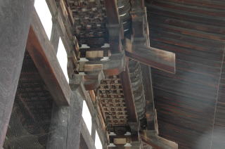 | 三手先組の斗供と、組入天井と、支輪で軒に深みをもたせている。三手先組と間斗束の組み合わせにみられるように、和様の様式が守られている。 |
