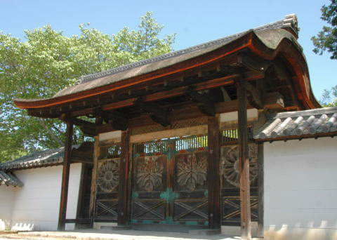 唐破風が両側面に設けられた平入の唐門である。 三宝院の勅使門であり、もとは別の場所に立てられていたが、総門の横に移築されて現在に至っている。 |