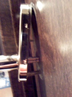 カバーをはずしても、穴の大きさはほとんど変わらなかった。これでは、ラッチをドア内部から操作できない。