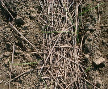右上の写真は2すじ植えです。刻んだ稲わらを置いてあります。 (想像ですが)保温、霜よけ、有機肥料の効果があるのでしょう。
