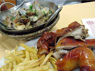 オー・サントスはジモティが利用するお店だった。店内は大衆食堂のような素っ気ない内装で、馴染み客で混雑していた。 もう一品は炒蜆(マカオ名物のアサリのガーリックバターソテー)。こっちもおいしかった。 |