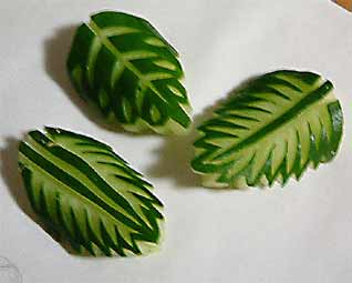 左は大根の輪切りから。右はキュウリの縦割りから始めます。