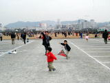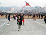 | 1月13日 日頃お世話になっている、日本玩具博物館様の凧揚げ大会が本日姫路競馬場公園であったので、家族そろって行ってまいりました。毎年行われている、人気の行事なので、駐車場もほぼ満員状態。公園内も人で一杯の状態です。午前中は風もなく、あまり凧も揚がらない状態でしたが昼からは風も出て絶好の凧揚げ日和となりました。 私達も、会場で和凧を買って、さっそく凧揚げにチャレンジ。以前やったときは子供達はあまり面白くなさそうだったので、凧揚げは嫌いかと思っていたら、子供達は自分で走って揚げるのが楽しいようで、今日は風のないのが幸いして、思う存分走り回っていました。ところが、調子に乗った母ちゃんが私も揚げるといって走り回り、凧を壊してしまったので、凧揚げはそこでお終いになってしまいました。 今日の偉人伝は「新島襄」なのですが、そのことを母ちゃんに伝えたら「ニンジンの女王?」と、とぼけたことを言っておりました。聞き違えたにしても「人参の女王」って、それ偉人ですか? |