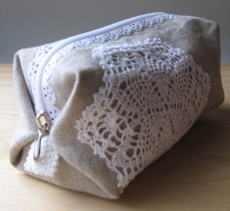 | リネン生地にしっかりした芯を貼り 素敵な手編みモチーフを飾りました☆ |