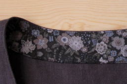 | お袖は少し折ってシックなお花柄を見せても素敵です☆ | 衿ぐり見返しにもお花柄です 前端にも使ってありますので 羽織って着た時にちらっと見えるのも素敵☆ |