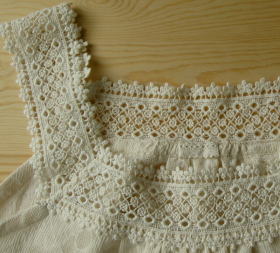 | ゴージャスで素敵なレース(コットン100%)です 後ろ襟ぐりの目印にオーガニックコットンレース☆ |
