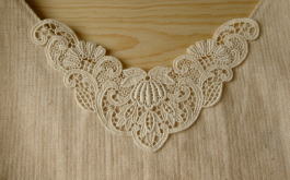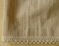 | 胸元には繊細で素敵なレースを、手まつりでとめてあります レースも希少なオーガニックコットンです☆ |