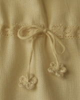 | ウエストにレースを使い、お紐の先には オーガニックコットン糸で編んだ、お花を付けました。 |
