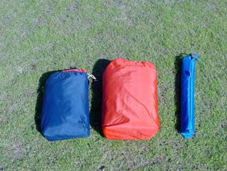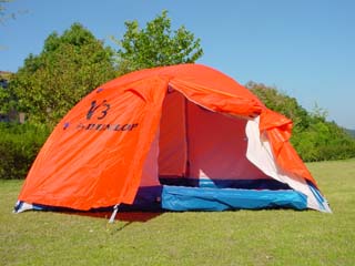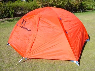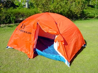 登山用品にも,新素材や機能性素材が使われている.テントの素材も,軽量で,強度があり,耐候性に優れた材料が使われるようになっている.下の写真のテントは,1年を通して使える登山用テントの代表的な製品である.このテントは,1人でやっても,設営に1-2分しかかからない.