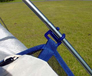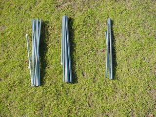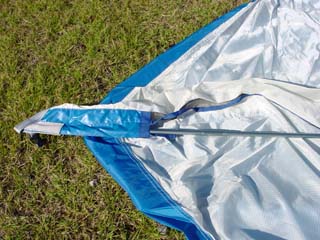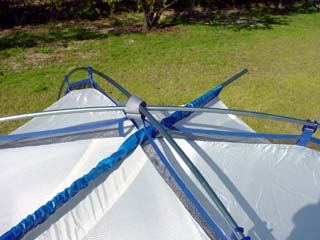 頂点を留める前に,竜骨用のポールを差し込む. |