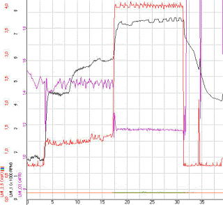 グラフの黒→エンジン回転数 赤→スロポジ電圧 ピンク→空燃比。