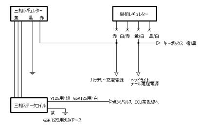 GSR125ステーターコイルを使用する場合は、ステータ側茶線を本体アースへ接続。(黒/白への接続は×)