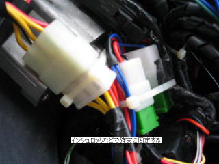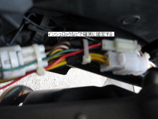 配線は振動などで揺れないように、インシュロックなどで確実に固定する。