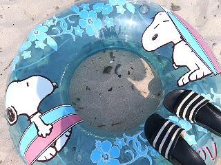 昨日、国府の浜に行きました。 旦那はサーフィン私は海水浴。 浮き輪でずっとういていました。めちゃ気持ちよかった。