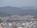 西、小豆島と岡山との県境の山々から姫路市街、姫路城、書写山の右、黒尾山や明神山との稜線の遥か遠くに氷ノ山。