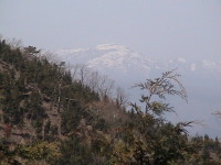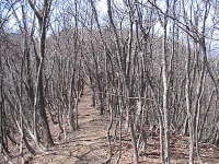 ここまで来てようやく登山道となるが、急登だ。右手、大屋町側は植林帯、左手、養父町側は自然林だが展望はほとんどなく、きついばかりだが、その右手の植林帯の合間から見え隠れする氷ノ山が唯一の救い。