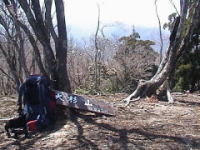 | 幕営もできそうなくらい広い須留ガ峰山頂だが、眺望は背伸びしてもこの程度 |