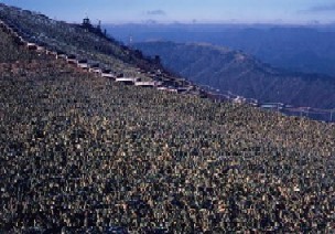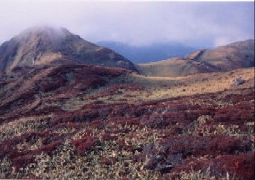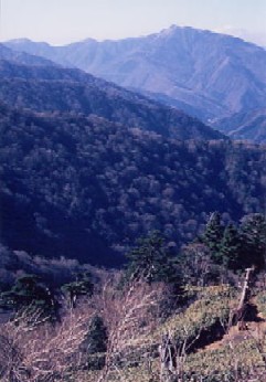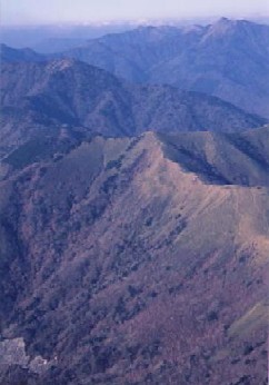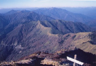 中央をクランク状に祖谷谷が横切り上部に奥祖谷の山々