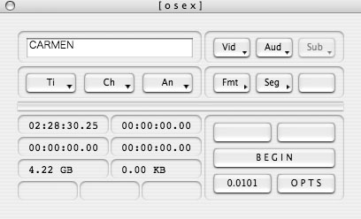 使用ソフトは、まず、Mac版DVDリッピングソフトの草分け的存在の、OSEx 0.0110a1