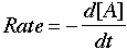 化学反応の速度( Rate )は単位時間に起きる反応の数である.反応が一回起きるとAとBはそれぞれ1個減少し,CとDはそれぞれ1個増加する.起こった反応の回数は,減少した物質や生成した物質の量に等しい.