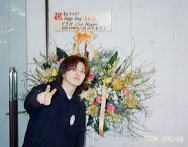 Y2K CLUB NIPPONと国際2000年問題研究委員会共同でお花を送りました。昼頃、2人がウロウロしていたのでお花の前で写真を撮ってもらいました。 |