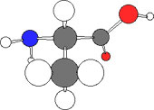 | 図 8.1 フィッシャーの投影法によるL-アラニン | 図 8.2 アミノ基を左,カルボキシル基を右にしたL-アラニン.メチル基(アルキル基)が手前の下になる |