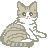 子猫の時は、黒と白のキジ猫でした。 今は白が薄茶に変わっちゃったぁ〜 ←やっぱり年のせい(‥? 頭のてっぺんが5oくらいの毛が立ってます。 尻尾の先がちょっと曲がってて、短め〜 顔は小っちゃいのに、体はおデブちゃん ん?・・・・・・ぶちゃいく〜って言わないでぇ〜(~_~) |