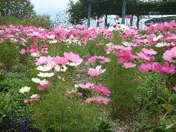 | 最初の目的だったOPENしたばかりの 「コスモス園」 展望塔から見てもまだまだ満開って 感じじゃないですよね〜^^; 人もまばらでちょっと寂しい園内でした |
