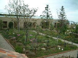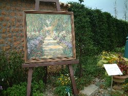 | 「香りの庭」 畑状にラベンダーやローズマリー、タイムなどが 植えられた庭のそばに 「モネ」や「ゴッホ」の絵画が・・・。 |