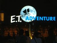 この時点で、もう18:30になっていました でもメインのアトラクションはこのETを残すだけ 相当、足に疲れが出てたけど、60分待ちの列に並んでおりました 入口で名前を登録してもらって、ETの故郷「グリーンプラネット」の 滅亡の危機を救う旅へ・・・。 森の中に入ると、いろんな香りに包まれます 匂いに酔う人は、ちょっとつらいかもしれません・・・。 9名乗りの自転車にのって、いろんなシーンを体験します TDLで言えば、ピーターパンみたいな感じです 可愛い系で、小さなお子様もOK! 最後にETが「バイバイ○○○」って名前を呼んでくれますが、なにせ 9名乗ってるから、よ〜く聞いてないと聞き逃しちゃうかもしれません 余談 自転車の前カゴにお土産の荷物を入れたら、スタッフのお姉さんに 注意されちゃいました〜(^^ゞ 落ちたら拾いにいけないんだって〜スンマソ〜ン(~_~;) |