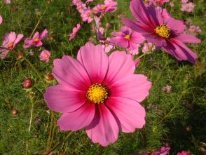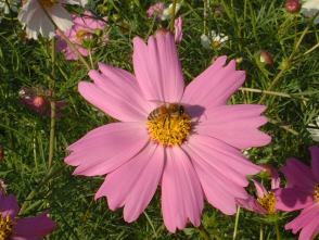 ↑ ミツバチたちが、一生懸命に蜜を集めていました 一面の秋桜に、もうカンゲキ〜(^.^)♪ |