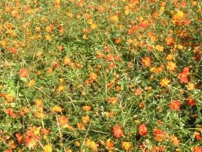 | ↑ 「キバナコスモス・マンダリン」 10月初旬ってなっていたので そろそろ終わりみたいな感じでした 「キバナコスモス・サンライズ」→ 小さな花びらのかわいいお花〜 |
