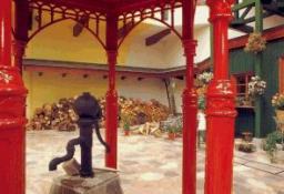 ![]() 「パティオ」 手こぎポンプと薪置き場 瓦屋根とお花に囲まれた中庭です |
