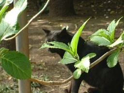 くろねこちゃん見っけ〜! キャン(+_+) 葉っぱが、お顔を隠しちゃってたわん〜 |