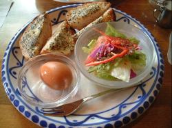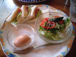 ←私のお薦めはコレ くるみパンのゴママヨネーズの オープンサンド ゴマの香りとマヨネーズがグッド! くるみパンは私の大好物です(^.^) モーニングCセット→ ハム・きゅうり・タマゴのミックスサンドです |